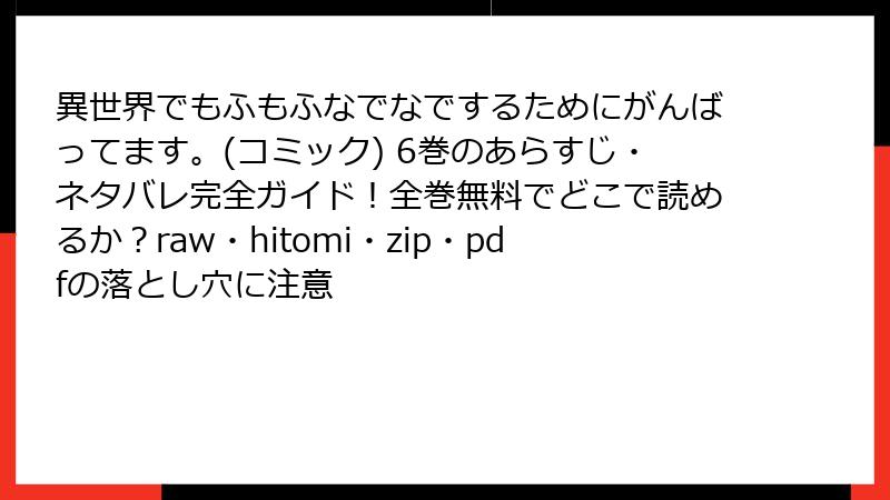 異世界でもふもふなでなでするためにがんばってます。(コミック) 6巻のあらすじ・ネタバレ完全ガイド!全巻無料でどこで読めるか?raw・hitomi・zip・pdfの落とし穴に注意