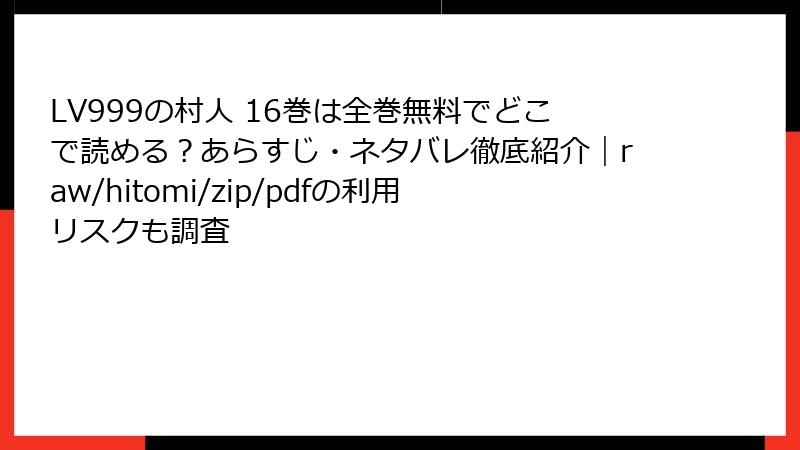 「LV999の村人」16巻は、シリーズの激しい展開が続く中、仲間たちの喪失と新たな謎が浮上する重要な巻です。ここでは、ネタバレを徹底的に含めて詳細を解説。注意: 以下は完全なネタバレなので、未読の方はご注意ください。ブログ記事として、ストーリーの流れを追いながら深掘りします。