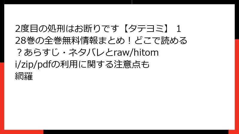 「2度目の処刑はお断りです【タテヨミ】」をraw/hitomi/zip/pdf/漫画バンクなどで読むのは、法的・セキュリティ・経済的リスクが大きすぎます。一瞬の無料が、後悔の種になる可能性が高いです。代わりに、正規のプラットフォームを利用すれば、高品質で安全に作品を楽しめ、作者をサポートできます。海賊版は避け、漫画文化を守る選択をしましょう。