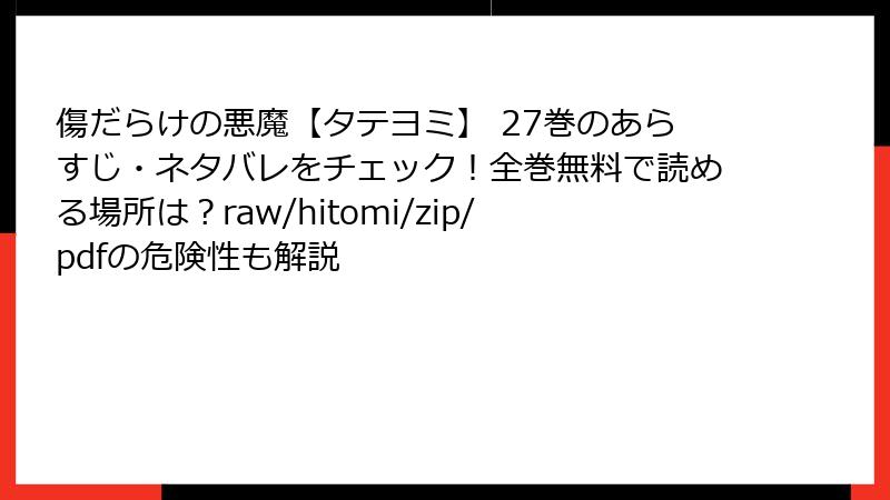 こんにちは、漫画の著作権問題に詳しいブロガーです。今回は、人気のタテヨミ漫画「傷だらけの悪魔【タテヨミ】」を、raw/hitomi/zip/pdf/漫画バンクなどの海賊版サイトで読むことのリスクについて、詳しく解説します。この作品は心理サスペンスの名作ですが、海賊版を利用するのはおすすめできません。法的・セキュリティ面を中心に、複数の観点から深掘りします。海賊版は一見便利ですが、隠れた危険がたくさんあります。未然に防ぐための知識としてお読みください。