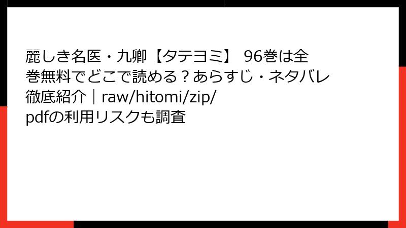 麗しき名医・九卿【タテヨミ】 96巻は全巻無料でどこで読める?あらすじ・ネタバレ徹底紹介|raw/hitomi/zip/pdfの利用リスクも調査