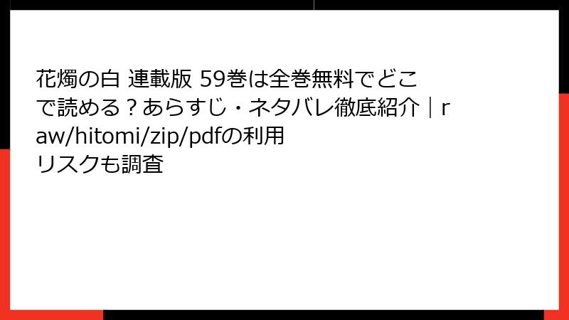 人気漫画「花燭の白」をraw、hitomi、zip、pdf、漫画バンクなどの海賊版サイトで読むのは、一見便利に思えるかもしれませんが、実は多大なリスクを伴います。これらのサイトは著作権を無視した違法アップロードが横行しており、利用者は知らず知らずのうちに危険にさらされます。この記事では、法的側面からセキュリティまで、具体的なリスクを詳しく解説します。海賊版を利用せず、正規の方法で楽しむことを強くおすすめします。
