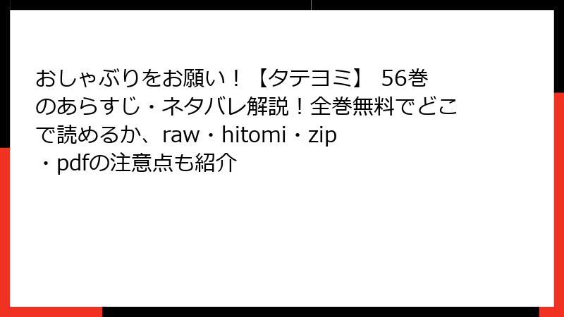 今回は、人気縦読みコミック「おしゃぶりをお願い!【タテヨミ】」の56巻に焦点を当てて、詳細なあらすじを掘り下げてみましょう。このシリーズは、日常のエロティックな出来事をコミカルに描いた作品として、多くのファンを魅了しています。56巻では、主人公たちの関係性がさらに複雑化し、意外な展開が待っています。以下で、ストーリーの流れを細かく分解しながら解説していきます。