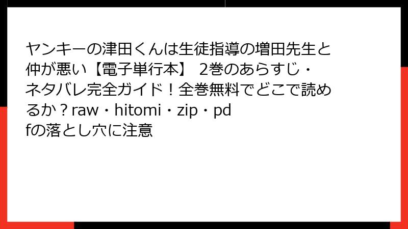 ヤンキーの津田くんは生徒指導の増田先生と仲が悪い【電子単行本】 2巻のあらすじ・ネタバレ完全ガイド!全巻無料でどこで読めるか?raw・hitomi・zip・pdfの落とし穴に注意