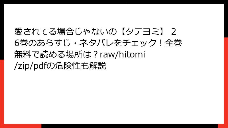 人気の縦読み漫画『愛されてる場合じゃないの』を、raw、hitomi、zip、pdf、漫画バンクなどの海賊版サイトで無料で読もうと考える人もいるかもしれません。しかし、これらのサイトを利用することは、さまざまな深刻なリスクを伴います。この記事では、海賊版サイトの利用がもたらす危険性を詳しく解説します。法的問題からセキュリティの脅威まで、読み応えのある内容で掘り下げていきましょう。安全に楽しむための知識として参考にしてください。