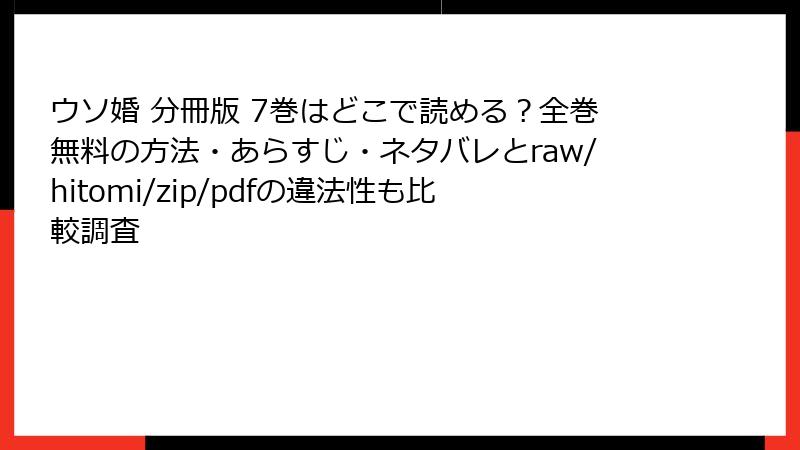 人気漫画「ウソ婚」をraw、hitomi、zip、pdf、漫画バンクなどの海賊版サイトで読むことは、一見手軽に思えますが、さまざまなリスクを伴います。これらのサイトは著作権を無視した違法アップロードが多く、利用者が知らずにトラブルに巻き込まれるケースが少なくありません。ここでは、法的側面からセキュリティ、プライバシー、品質、倫理的影響までを詳しく解説します。海賊版利用の危険性を理解し、正規の方法で楽しむことをおすすめします。