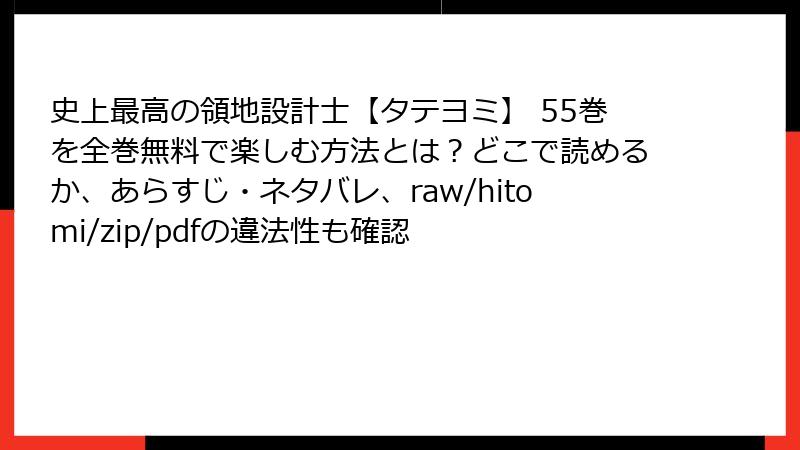 史上最高の領地設計士【タテヨミ】 55巻を全巻無料で楽しむ方法とは?どこで読めるか、あらすじ・ネタバレ、raw/hitomi/zip/pdfの違法性も確認