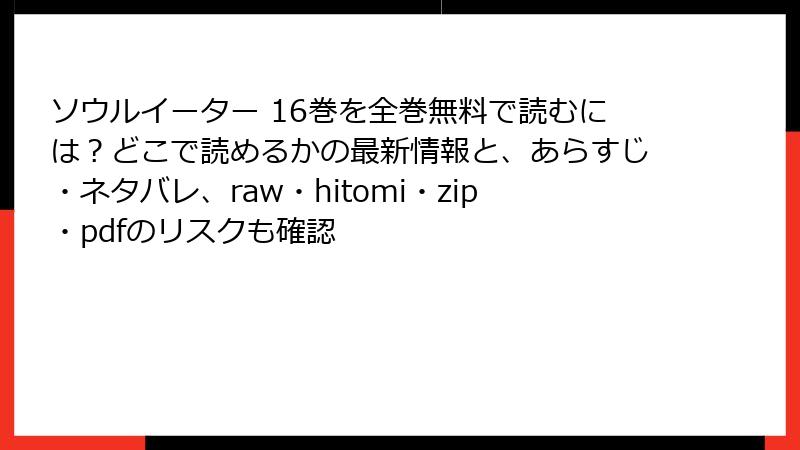 まとめると、海賊版サイトで『ソウルイーター』を読むのは、法的・セキュリティ的なリスクが高く、短期的な無料アクセス以上の代償を払うことになります。安全で合法的な方法を選ぶことが、自身と業界を守る賢明な選択です。
