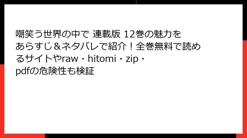 raw、hitomi、zip、pdf、漫画バンクなどの海賊版サイトで「嘲笑う世界の中で」を読むことは、法的・セキュリティ・経済的・倫理的な多大なリスクを伴います。これらの危険性を理解し、避けることが重要です。代わりに、正規の電子書籍サービスを利用すれば、安全に高品質な作品を楽しめます。違法の誘惑に負けず、健全なファン活動を心がけましょう。この記事が、あなたの選択の一助になれば幸いです。