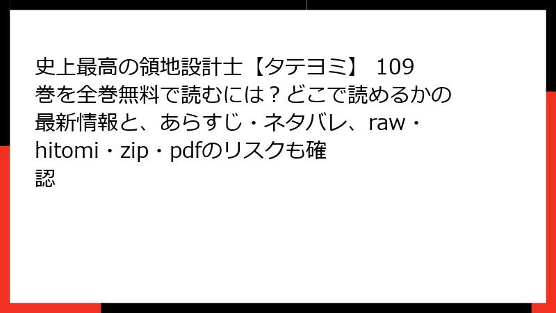 こんにちは、漫画愛好家として正規ルートでの作品享受を推奨する筆者です。今日は、韓国発の人気ウェブトゥーン『史上最高の領地設計士【タテヨミ】』を、raw、hitomi、zip、pdf、漫画バンクなどの海賊版サイトで読むことのリスクについて、詳しく掘り下げます。この作品は、異世界転生と領地開発の爽快なストーリーが魅力ですが、海賊版を利用するとさまざまな問題が生じます。法的、セキュリティ、倫理的観点から解説し、なぜ避けるべきかを読み応えある形でまとめました。海賊版は一時的な便利さを提供するかもしれませんが、長期的には損失が大きいことを理解してください。