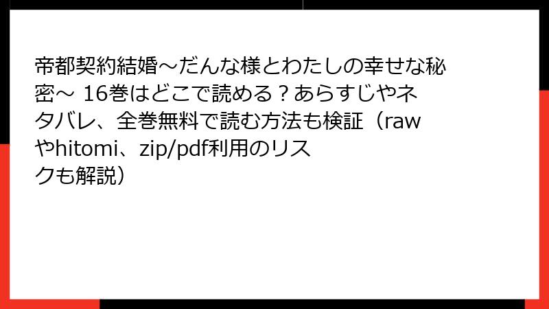 帝都契約結婚~だんな様とわたしの幸せな秘密~ 16巻はどこで読める?あらすじやネタバレ、全巻無料で読む方法も検証(rawやhitomi、zip/pdf利用のリスクも解説)