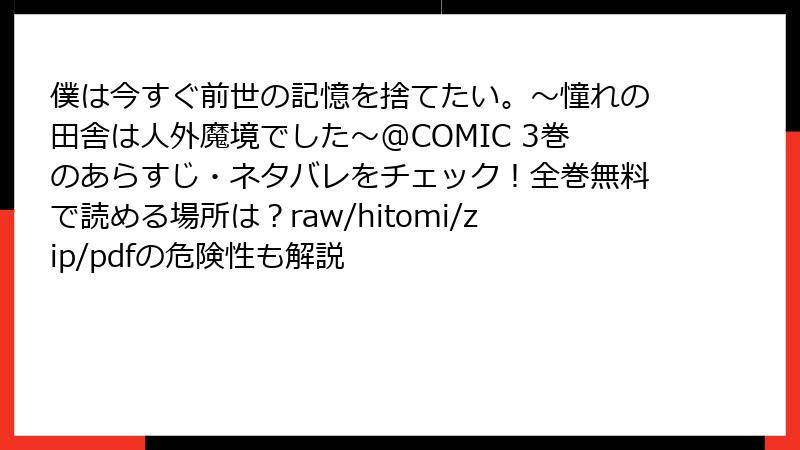 僕は今すぐ前世の記憶を捨てたい。~憧れの田舎は人外魔境でした~@COMICをraw/hitomi/zip/pdf/漫画バンクなどの海賊版サイトで読むリスク