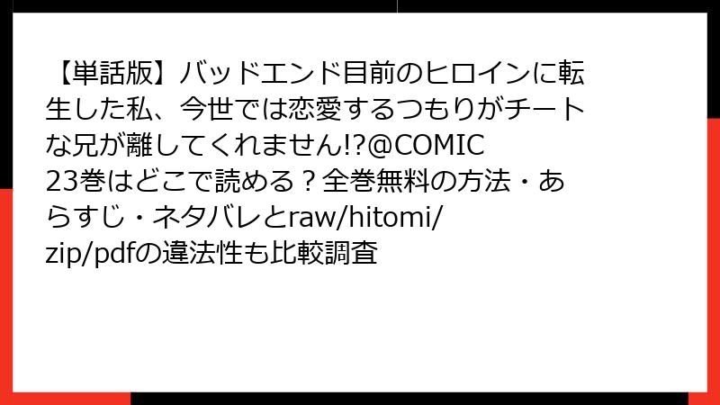 - 【単話版】バッドエンド目前のヒロインに転生した私、今世では恋愛するつもりがチートな兄が離してくれません!?@COMIC 23巻 をraw/hitomi/zip/pdf/漫画バンクなどの海賊版サイトで読むリスク