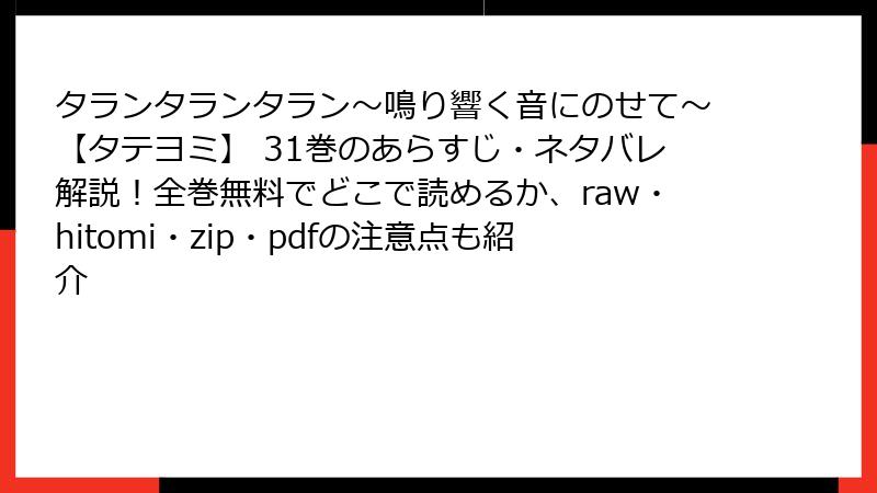 注意: この記事には『タランタランタラン~鳴り響く音にのせて~』31巻の重大なネタバレが含まれます。未読の方はご注意ください。物語の緊張感を損なう可能性がありますが、詳細に解説していきます。