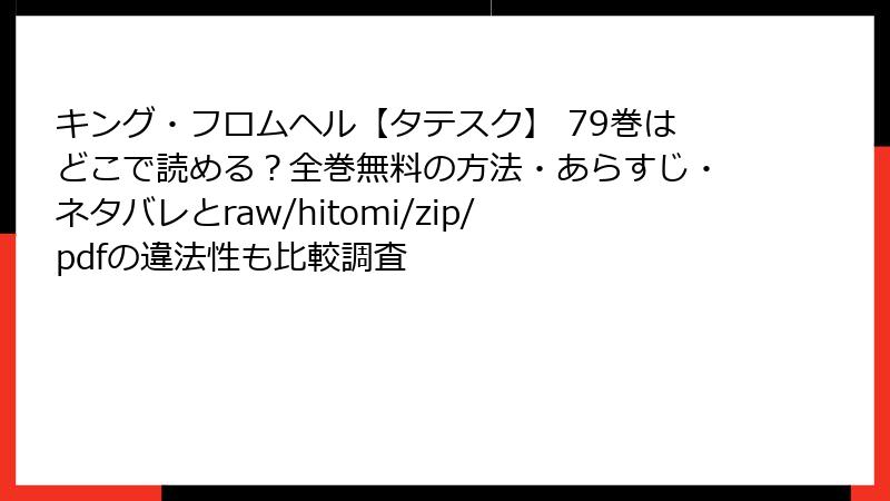 海賊版サイトで「キング・フロムヘル【タテスク】」を読むのは、法的、セキュリティ、プライバシー、倫理的な多大なリスクを伴います。これらのサイトは一時的な利便性を提供するかもしれませんが、長期的にはユーザー自身に深刻な被害を招く可能性が高いです。安全で合法的な手段を選ぶことが、自身と業界を守る最善策です。