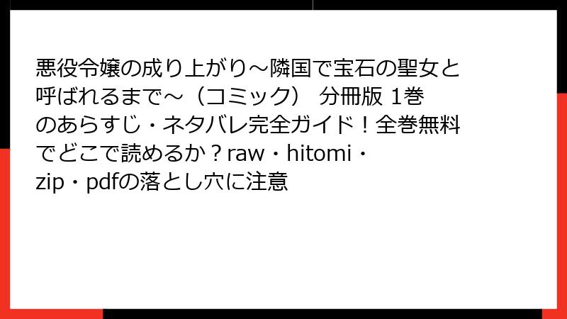 悪役令嬢の成り上がり~隣国で宝石の聖女と呼ばれるまで~(コミック) 分冊版 1巻のあらすじ・ネタバレ完全ガイド!全巻無料でどこで読めるか?raw・hitomi・zip・pdfの落とし穴に注意