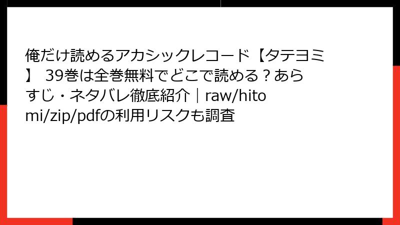 人気タテヨミ漫画「俺だけ読めるアカシックレコード」を、raw/hitomi/zip/pdf/漫画バンクなどの海賊版サイトで読むことは、一見便利に思えますが、多大なリスクを伴います。この記事では、そのリスクを法的、セキュリティ、経済的、品質的な観点から詳しく解説します。海賊版の利用は避け、正規のプラットフォームで楽しむことを強くおすすめします。