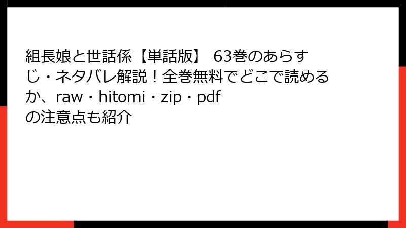 「組長娘と世話係」の単話版63巻は、シリーズの中でも特にほのぼのとしたエピソードで、ヤクザたちの意外な過去が明らかになる内容です。この記事では、ネタバレを徹底的に掘り下げて解説します。未読の方は注意してください。物語の魅力であるギャップ萌えが満載の巻となっています。
