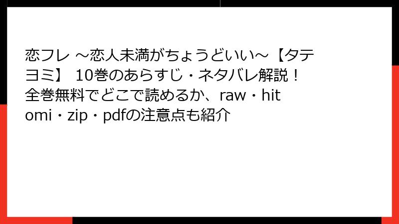 恋フレ ~恋人未満がちょうどいい~【タテヨミ】 10巻のあらすじ・ネタバレ解説!全巻無料でどこで読めるか、raw・hitomi・zip・pdfの注意点も紹介