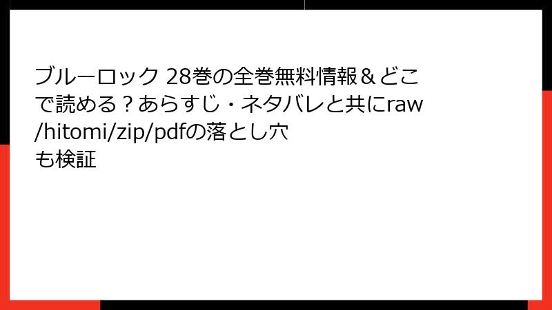 ブルーロック 28巻の全巻無料情報&どこで読める?あらすじ・ネタバレと共にraw/hitomi/zip/pdfの落とし穴も検証