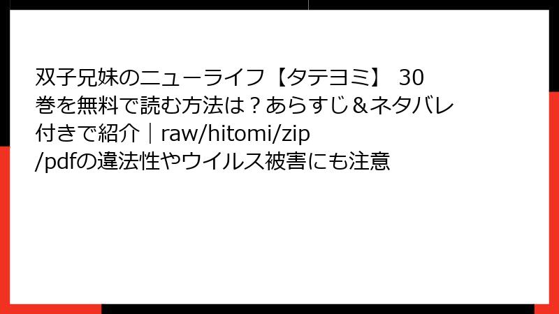 raw、hitomi、zip、pdf、漫画バンクなどの海賊版サイトで「双子兄妹のニューライフ【タテヨミ】」を読むのは、法的・セキュリティ・倫理的な多大なリスクを伴います。一瞬の無料に惑わされず、作者を尊重した選択を。安全で高品質な読書体験が、長期的に見て最良です。