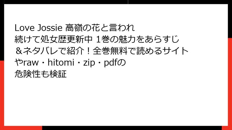 人気の漫画「Love Jossie 高嶺の花と言われ続けて処女歴更新中 1巻」を、raw、hitomi、zip、pdf、漫画バンクなどの海賊版サイトで無料で読もうとする人は少なくありません。しかし、このような行為には深刻なリスクが伴います。法的問題からセキュリティの脅威、さらには倫理的な側面まで、さまざまな角度から詳しく解説します。公式ルートでの購入を推奨する理由も含め、読み応えのある形でまとめました。