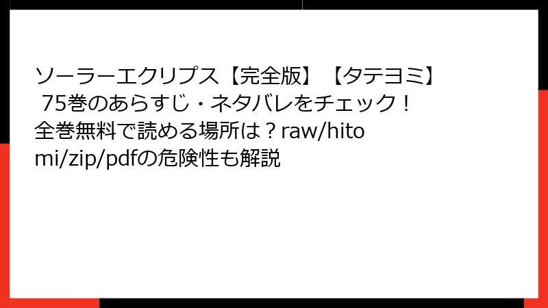ソーラーエクリプス【完全版】【タテヨミ】75巻を海賊版サイトで読むリスクの詳細
