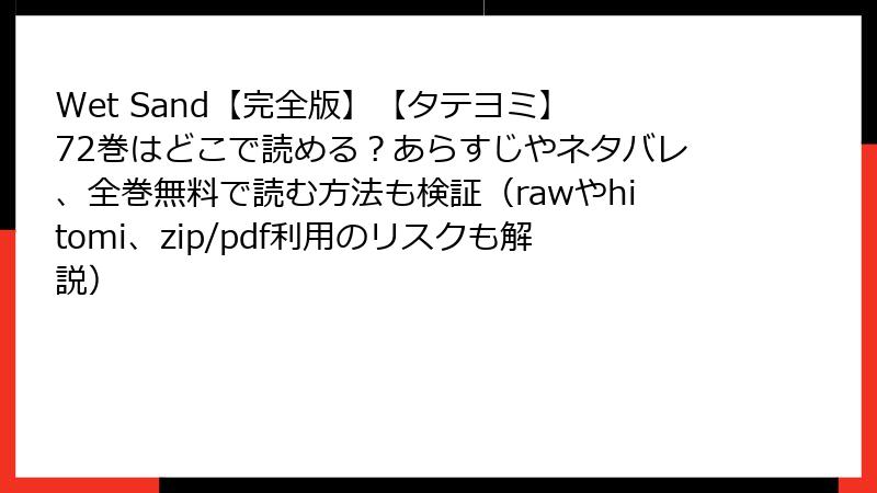 などの箇条書きのHTMLタグや、tableタグも使用してOK。ただし、リンクやURLは、絶対に、挿入しない。Wet Sand【完全版】【タテヨミ】 72巻 この漫画・コミックの、あらすじを詳しく。単一の