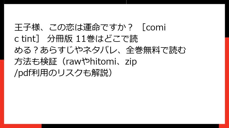 人気のロマンス漫画「王子様、この恋は運命ですか?」を、raw/hitomi/zip/pdf/漫画バンクなどの海賊版サイトで読むのは、便利そうに見えて実は大きな落とし穴がいっぱいです。この記事では、そんな海賊版サイトを利用するリスクを、法的・セキュリティ・倫理的側面から詳しく解説します。ブログ風にまとめていますので、じっくりお読みください。海賊版は一時的な楽しみのために、長期的なトラブルを招く可能性が高いんです。