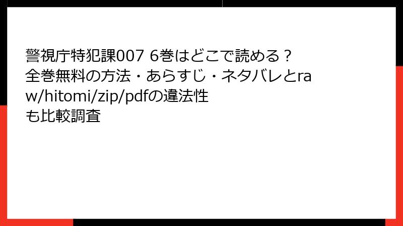 人気超能力刑事ラブコメ「警視庁特犯課007」を、rawサイトやhitomi、zip・pdf形式のファイル共有、漫画バンクといった違法海賊版サイトで読む行為には、想像以上に深刻なリスクが潜んでいます。法的罰則からデバイス破壊、個人情報流出、さらには作者や業界全体への打撃まで、さまざまな危険性が報告されています。この記事では、2026年現在の最新情報に基づき、各リスクを詳しく解説します。知らずに利用して後悔しないためにも、ぜひ最後までお読みください。