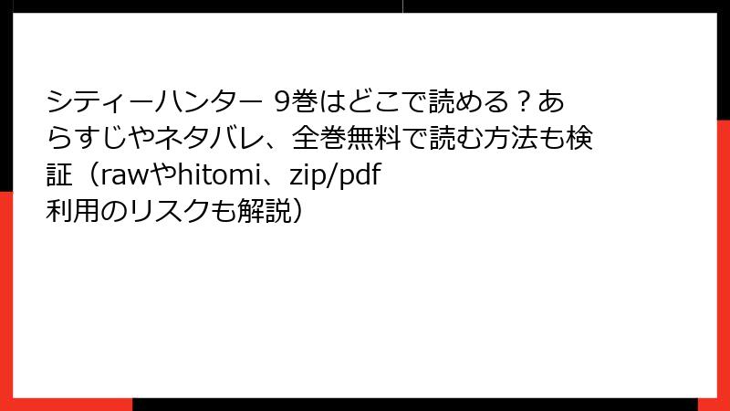 シティーハンター9巻を海賊版で読むのは、短期的な無料の代償として長期的なトラブルを招きます。安全第一で、正しい方法を選びましょう。