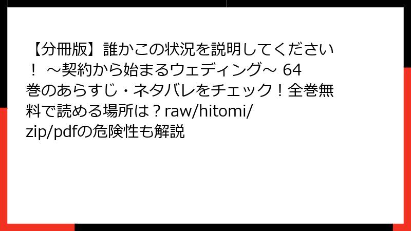 【分冊版】誰かこの状況を説明してください! ~契約から始まるウェディング~ をraw/hitomi/zip/pdf/漫画バンクなどの海賊版サイトで読むリスクを徹底解説