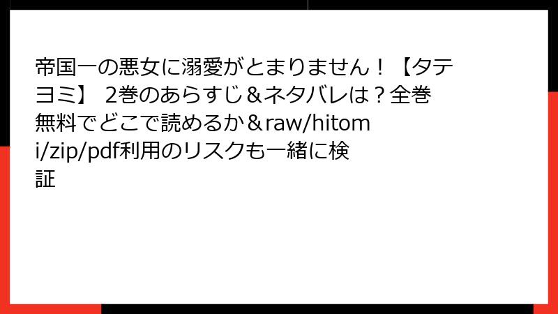 raw、hitomi、zip、pdf、漫画バンクなどの海賊版サイトで「帝国一の悪女に溺愛がとまりません!」を読むのは、法的罰則、セキュリティ脅威、経済的損失、業界への悪影響という多角的なリスクを伴います。これらの危険を避けるため、公式の電子書籍サービスを利用しましょう。安全で高品質な読み方が、作品と自分を守る鍵です。違法サイトの誘惑に負けず、責任あるファンとして楽しんでください。