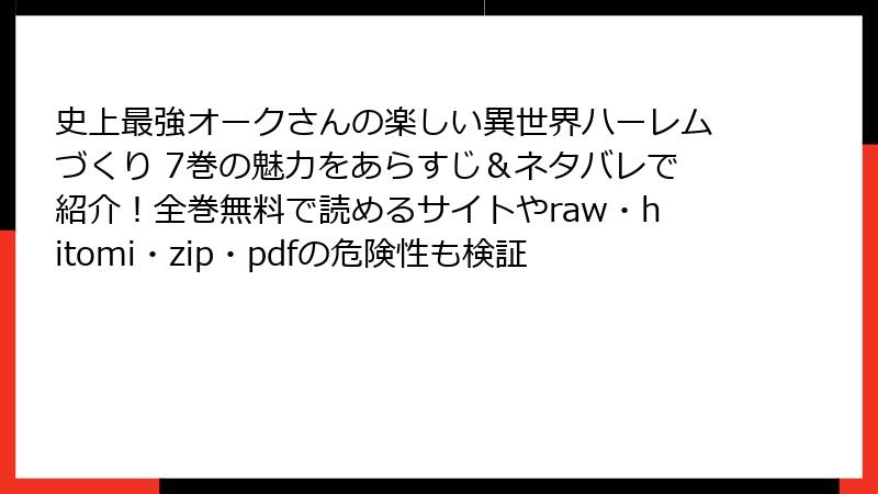 史上最強オークさんの楽しい異世界ハーレムづくり 7巻:完全ネタバレ徹底解説!衝撃の結末まで全部バラします