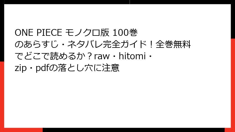 ONE PIECE モノクロ版 100巻 レビュー・口コミ・評判詳解