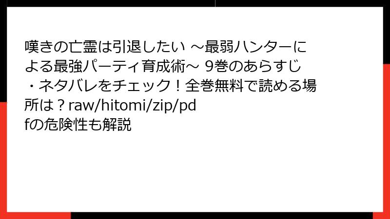 嘆きの亡霊は引退したい ~最弱ハンターによる最強パーティ育成術~ を raw/hitomi/zip/pdf/漫画バンクなどの海賊版サイトで読むリスク詳解
