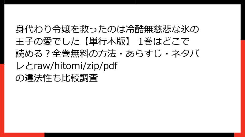 身代わり令嬢を救ったのは冷酷無慈悲な氷の王子の愛でした【単行本版】1巻 をraw/hitomi/zip/pdf/漫画バンクなどで読むリスクを徹底解説