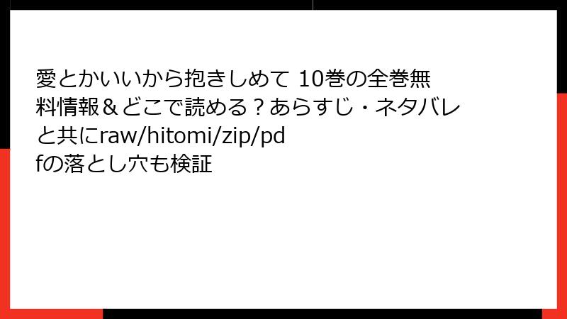 人気漫画『愛とかいいから抱きしめて』を、raw、hitomi、zip、pdf、漫画バンクなどの海賊版サイトで無料で読もうとする人は少なくありません。しかし、これらの違法サイトを利用することは、法的・セキュリティ面で深刻なリスクを伴います。この記事では、そんな海賊版サイトの危険性を詳しく解説します。漫画を楽しむなら、正規の手段を選ぶのが賢明です。以下でリスクをカテゴリ別に深掘りします。