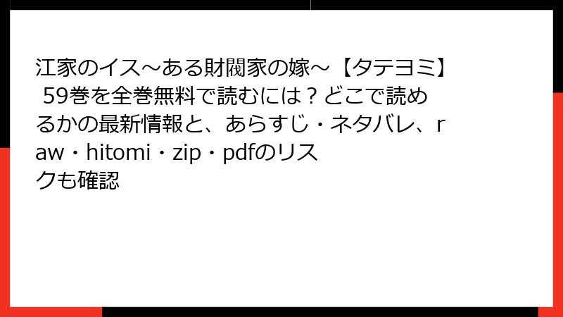 江家のイス~ある財閥家の嫁~【タテヨミ】 59巻を全巻無料で読むには?どこで読めるかの最新情報と、あらすじ・ネタバレ、raw・hitomi・zip・pdfのリスクも確認