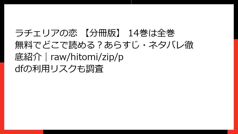 ラチェリアの恋 【分冊版】 14巻は全巻無料でどこで読める?あらすじ・ネタバレ徹底紹介|raw/hitomi/zip/pdfの利用リスクも調査