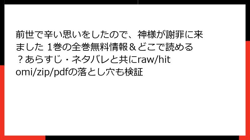 前世で辛い思いをしたので、神様が謝罪に来ました 1巻 レビュー・口コミ・評判詳解