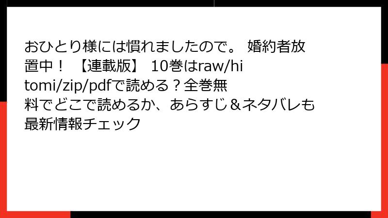 - 『おひとり様には慣れましたので。 婚約者放置中! 【連載版】 10巻』をraw・hitomi・zip・pdf・漫画バンクなどの海賊版サイトで読むリスクを徹底解説