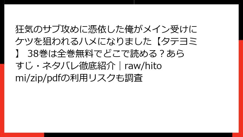 BLマンガの異世界転生(?)ものとして話題沸騰中のこの作品。タイトルからしてぶっ飛んだ設定が魅力の「狂気のサブ攻めに憑依した俺がメイン受けにケツを狙われるハメになりました【タテヨミ】」。今回は、38巻のあらすじをネタバレ満載で深掘りしていきます。原作ファン必見の展開が詰まった一冊ですよ! タテヨミ形式ならではの没入感で、スマホ片手に一気読み必至です。