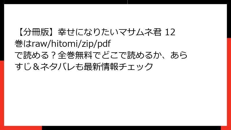 【分冊版】幸せになりたいマサムネ君 12巻はraw/hitomi/zip/pdfで読める?全巻無料でどこで読めるか、あらすじ&ネタバレも最新情報チェック