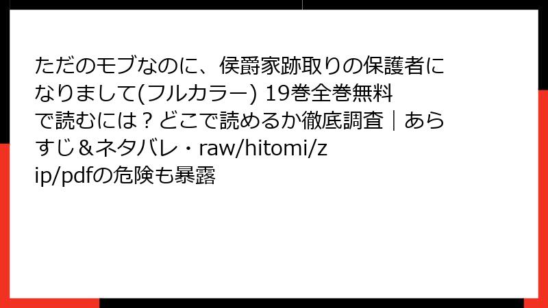 - 【警告】『ただのモブなのに、侯爵家跡取りの保護者になりまして』をraw/hitomi/zip/pdf/漫画バンクで読むと、人生が終わるレベルのリスクがヤバい