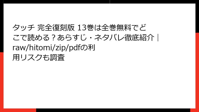 もしあなたが「青春」「恋」「野球」のどれかに心揺さぶられた経験があるなら、13巻は必読。涙と興奮が止まらない、**一生に一度の“タッチ”体験**が待っています。書店や電子書籍で、今すぐ手に取ってみては?