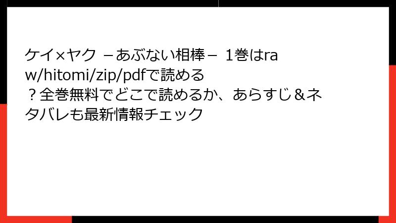 『ケイ×ヤク -あぶない相棒-』をraw/hitomi/zip/pdf/漫画バンクなどの海賊版サイトで読むリスクを徹底解説