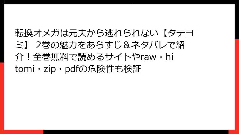 - 転換オメガは元夫から逃れられない【タテヨミ】 2巻をraw/hitomi/zip/pdf/漫画バンクなどの海賊版サイトで読むリスク詳解