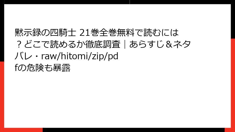 - 黙示録の四騎士 21巻の電子書籍配信情報