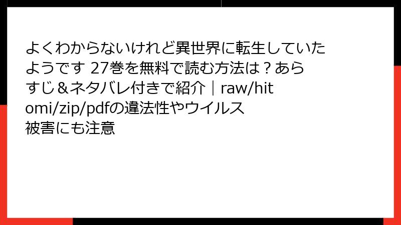 よくわからないけれど異世界に転生していたようです 27巻を無料で読む方法は?あらすじ&ネタバレ付きで紹介|raw/hitomi/zip/pdfの違法性やウイルス被害にも注意